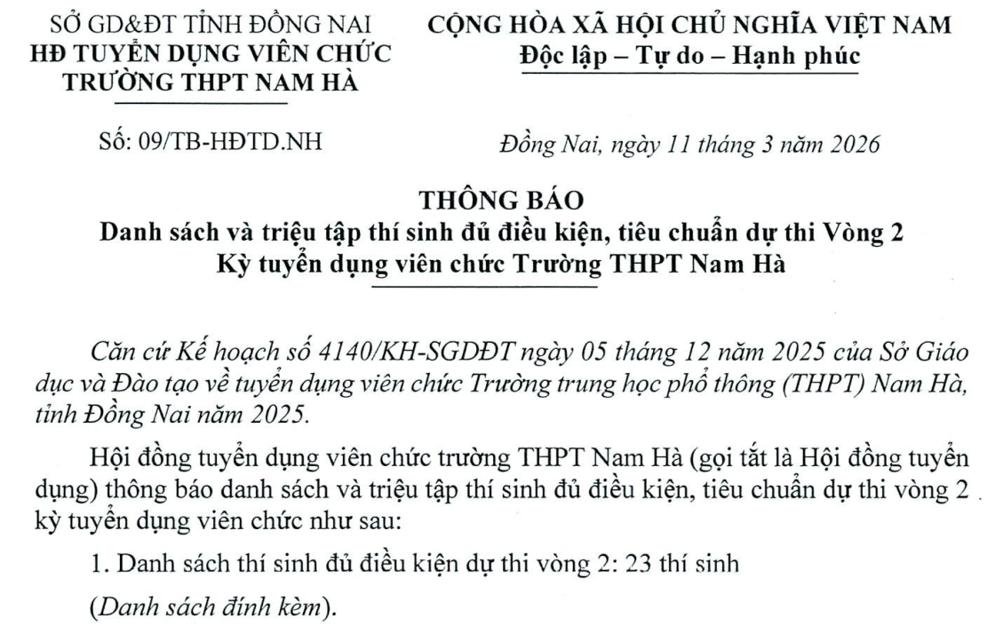 Triệu tập thí sinh dự tuyển GV vào vòng 2